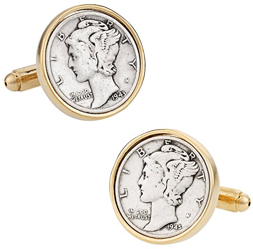 Best Seller! Genuine Mercury Dime Coin Cufflinks in 14kt. Gold Overlay Setting with Presentation Box Review